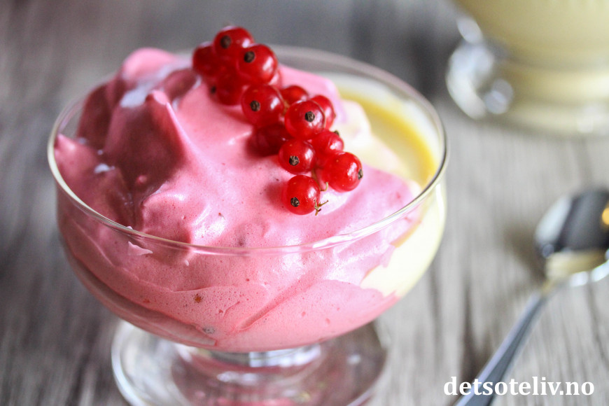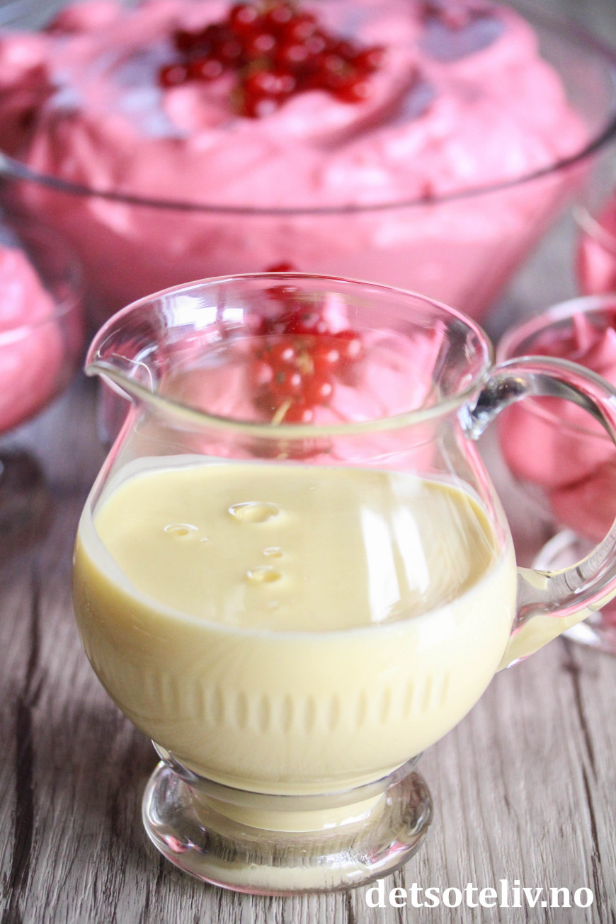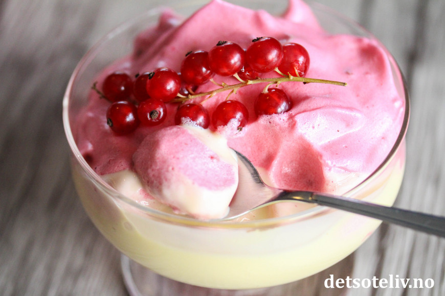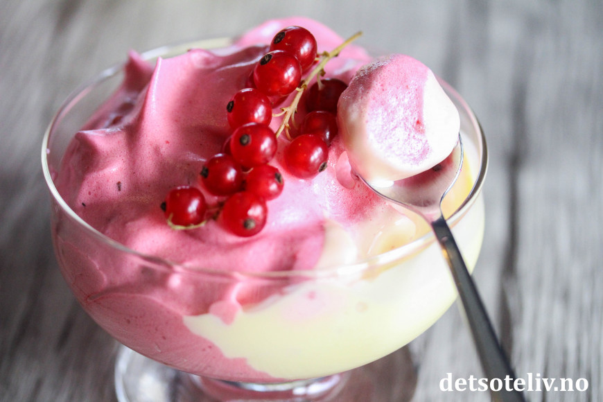 Trollkrem med rips og vaniljesaus er en herlig kombinasjon!
