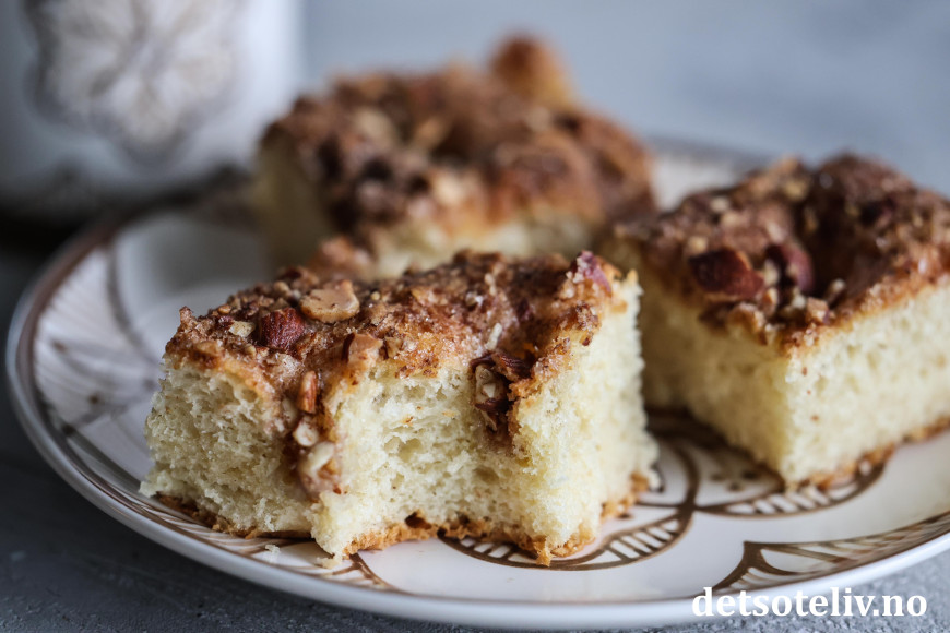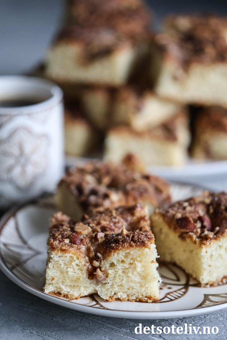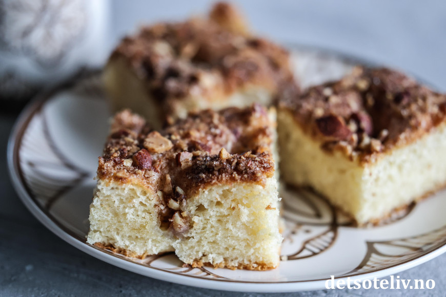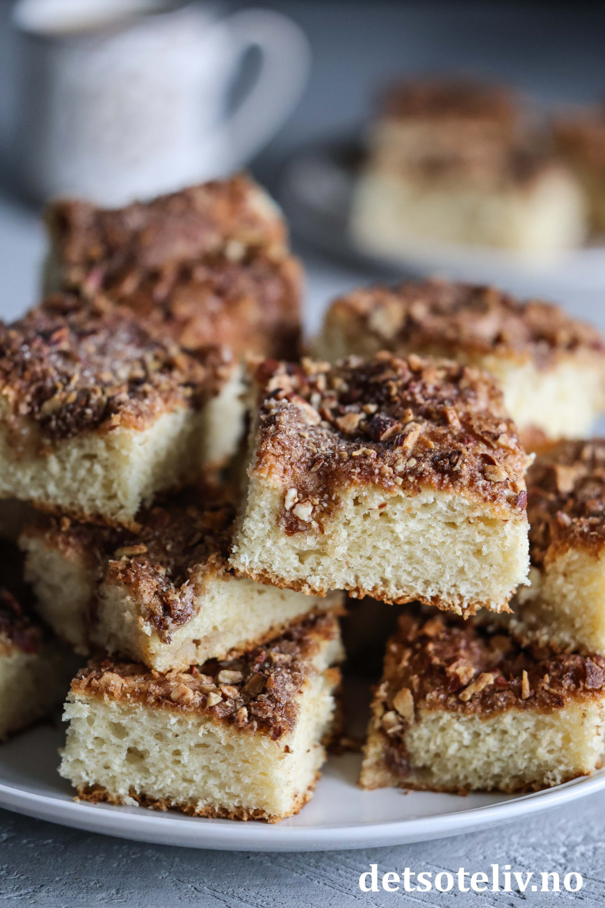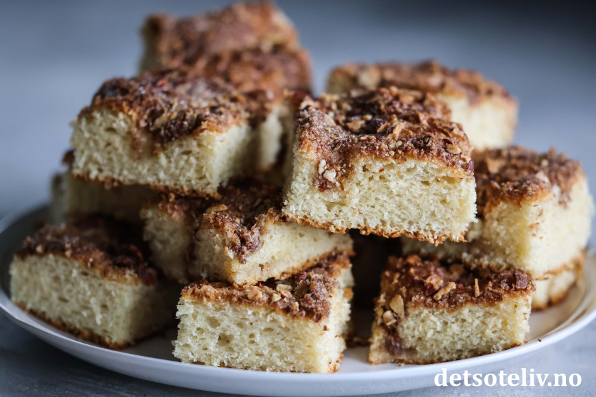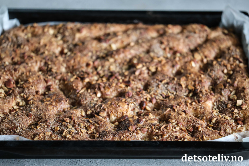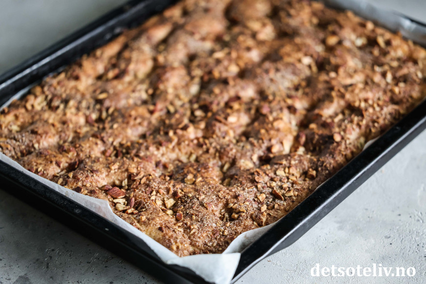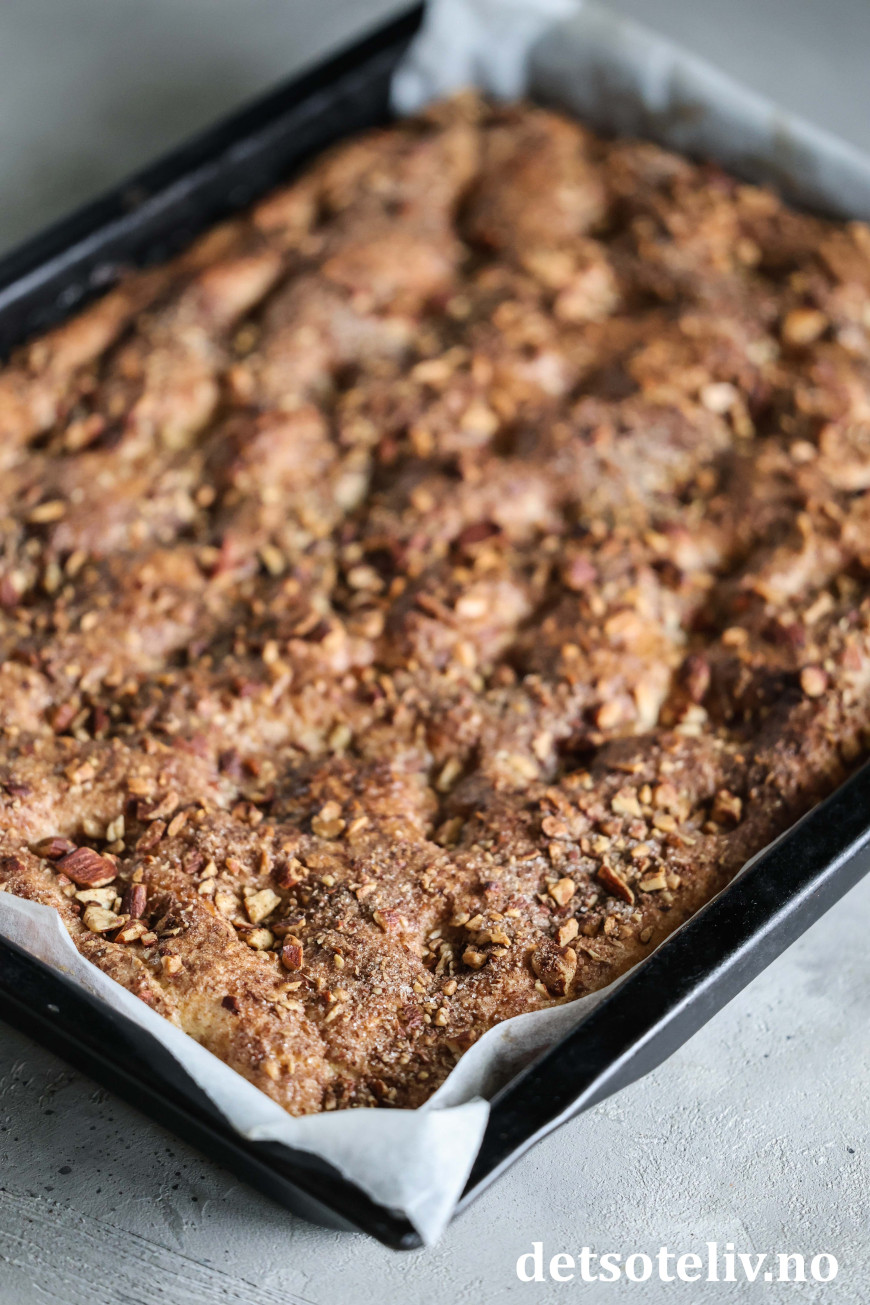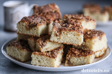 ♥ Se også dansk versjon av lignende kake som heter Brunsviger fra Fyn, som imidlertid har en mer flytende kaneltopping.