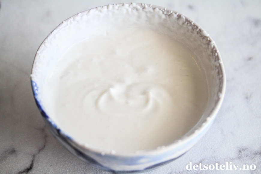 Jeg brukte her vanlig melis, men sukrinmelis kan gjerne brukes hvis du vil ha en sukkerfri kokoskrem.