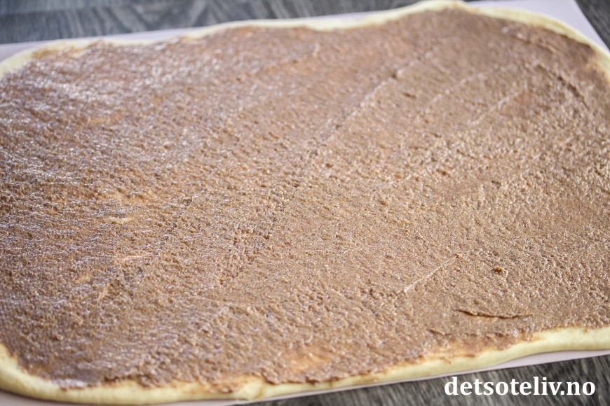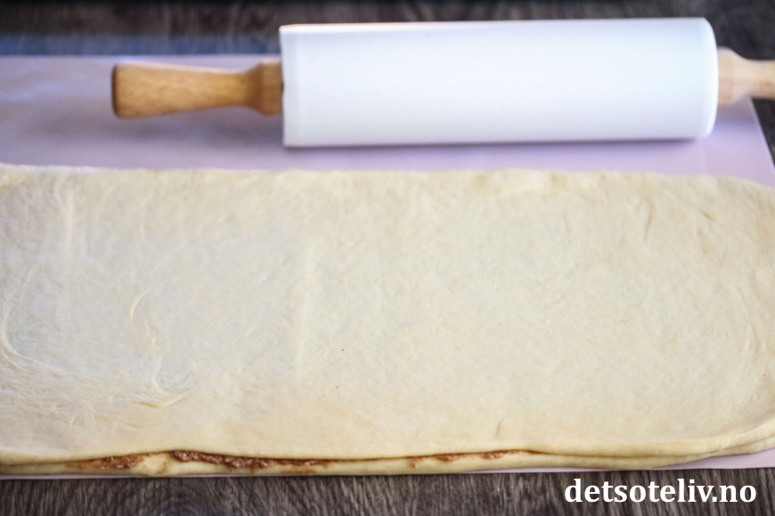 Kjevle ut deigen til et stort rektangel (ca. 30 x 40 cm).