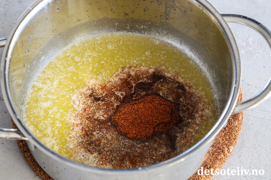 Lag paprikasmør ved å blande smeltet smør med paprikapulver og eventuelt litt chiliflak.