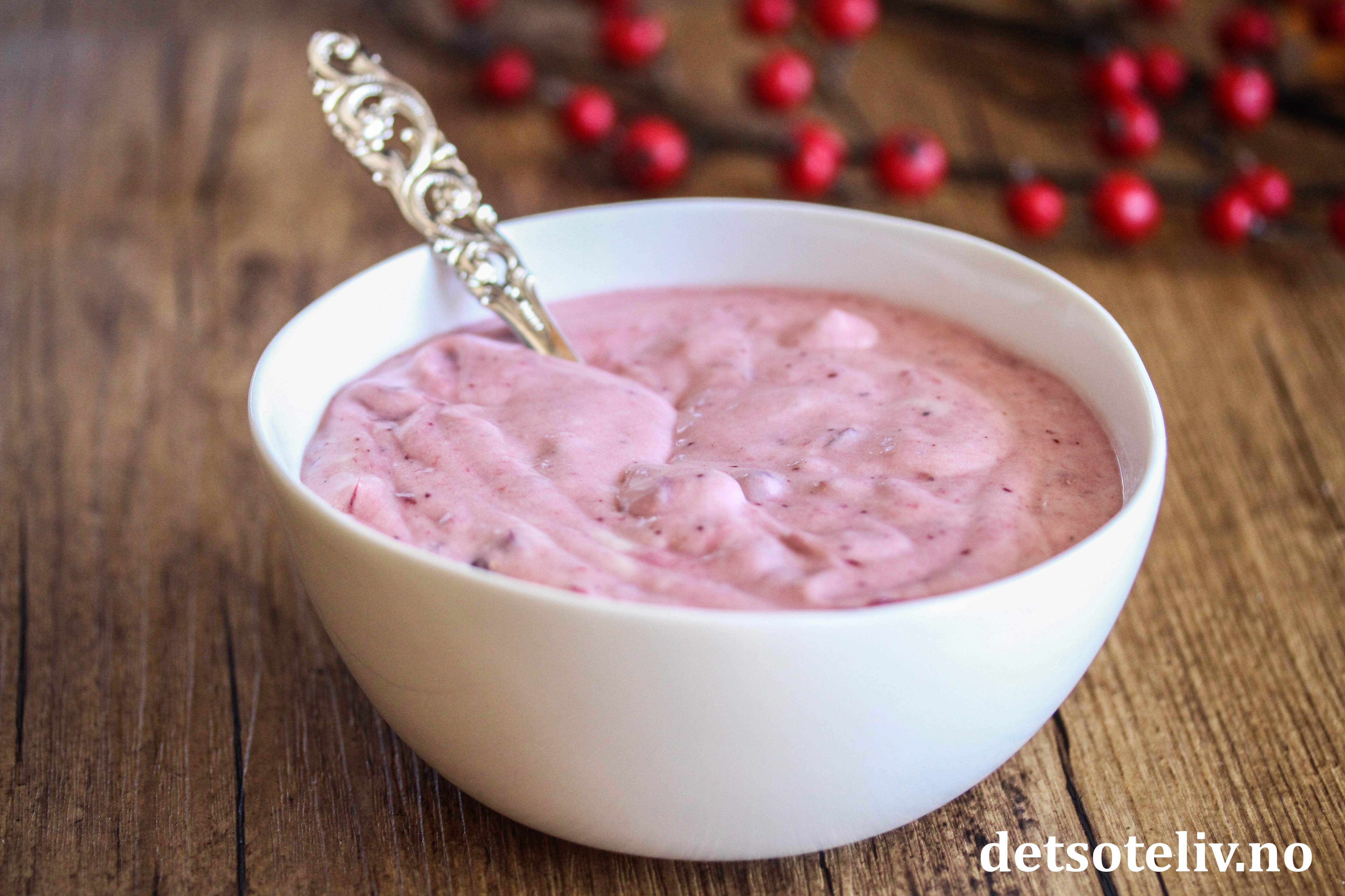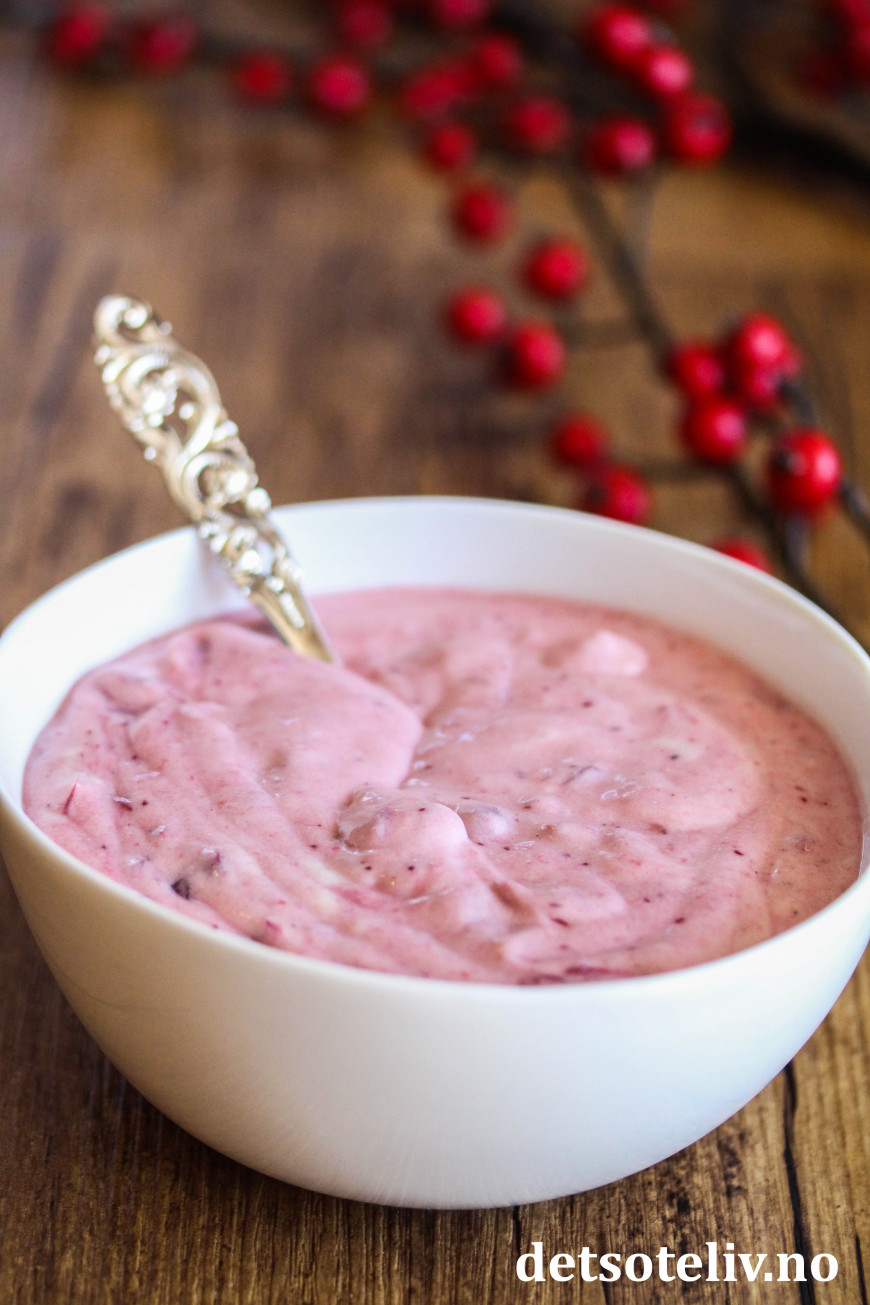 Tyttebærkrem er nydelig som tilbehør til for eksempel Strull eller Krumkaker.