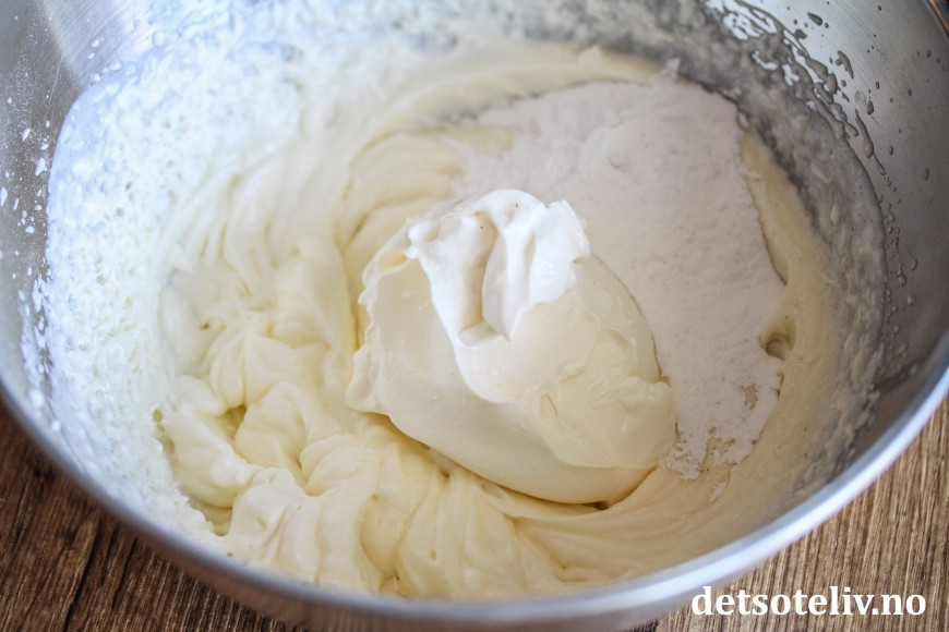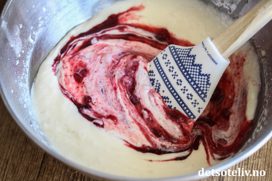 Bland dette forsiktig sammen. Vend deretter inn tyttebærsyltetøy.