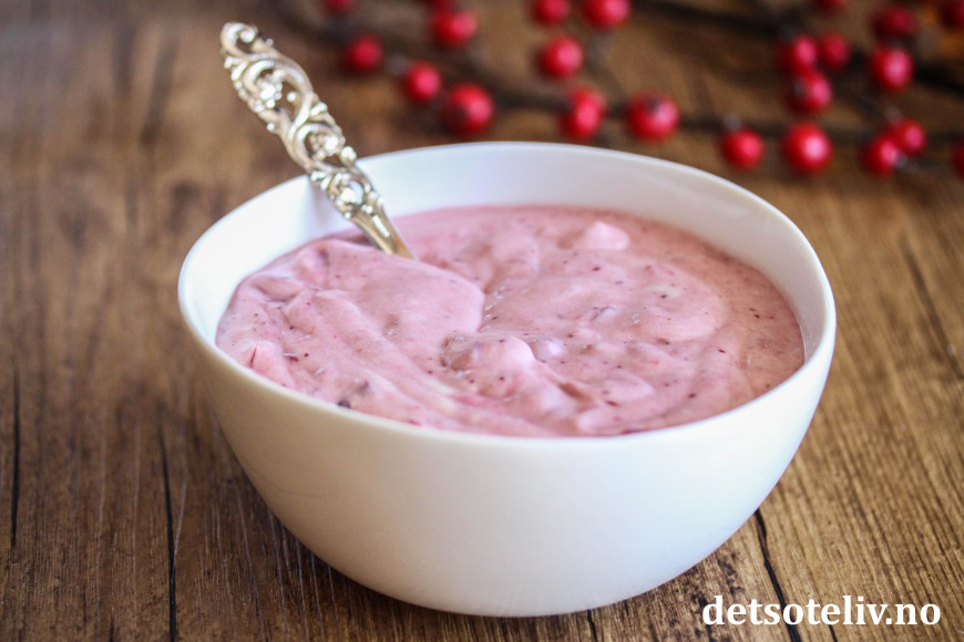 Ha tyttebærkremen i en skål og oppbevares i kjøleskapet frem til servering.