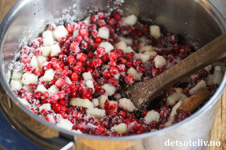 ♥ Jeg liker best kombinasjonen tyttebær og pære, men du kan bruke epler i stedet, som også blir veldig godt. En annen vri er å tilsette plommer.