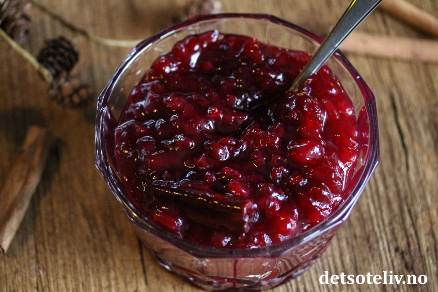 Nyt dette kjempegode tyttebærsyltetøyet med pære og kanel!
