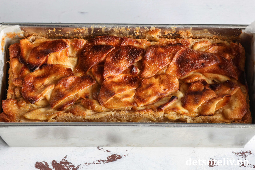 ♥ Når du skal fylle epledeigen i formen, er det viktig at du ikke får hulrom mellom eplene, for det vil gi "hull" i kaken. Det kan faktisk være lurt å bruke hendene (selv om det blir klissete 😊) og først legge epledeigen i et lag i formen og passe på at hele bunnen blir jevnt dekket. Deretter fylle på med mer av epledeigen, men litt av gangen.