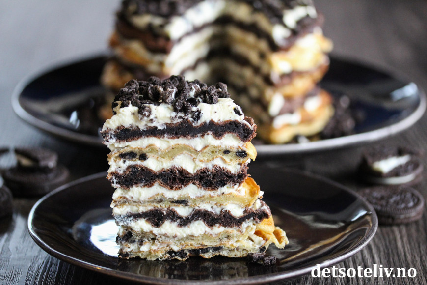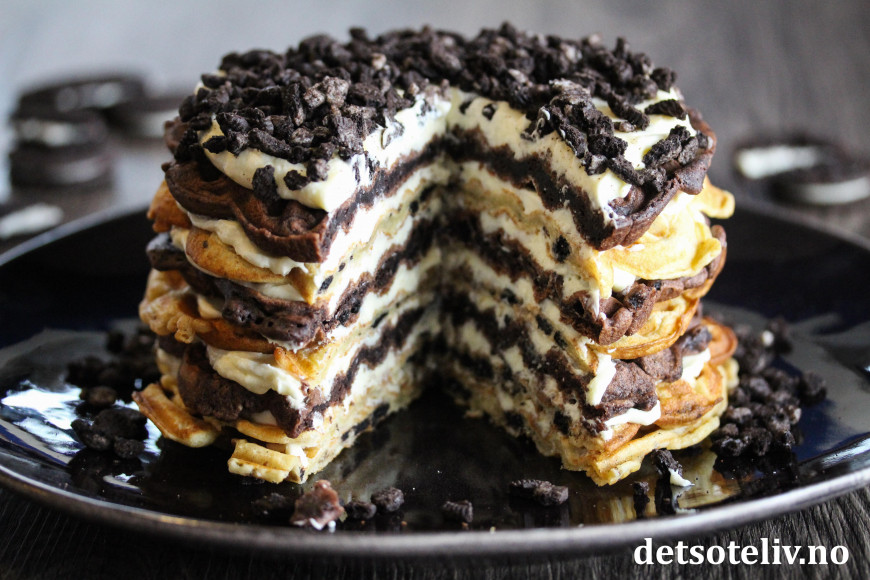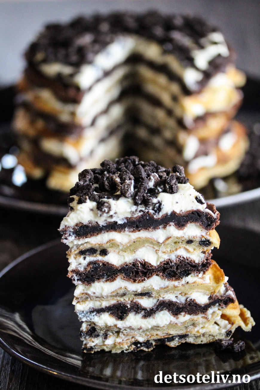 Hos meg blir det som du skjønner en digg Vaffelkake med Oreo på vaffeldagen!