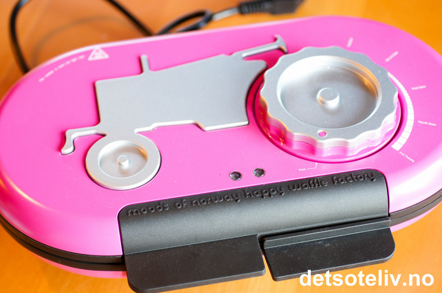Logoen til Moods of Norway er en rosa traktor, og aller helst skal vaflene til Moods of Norway stekes i deres spesialdesignede, rosa vaffeljern med traktorfasong!