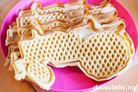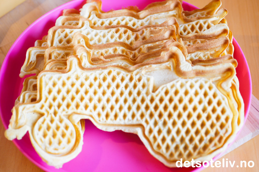 Oppskriften er nå testet, og ga både veldig gode og veldig kule vafler