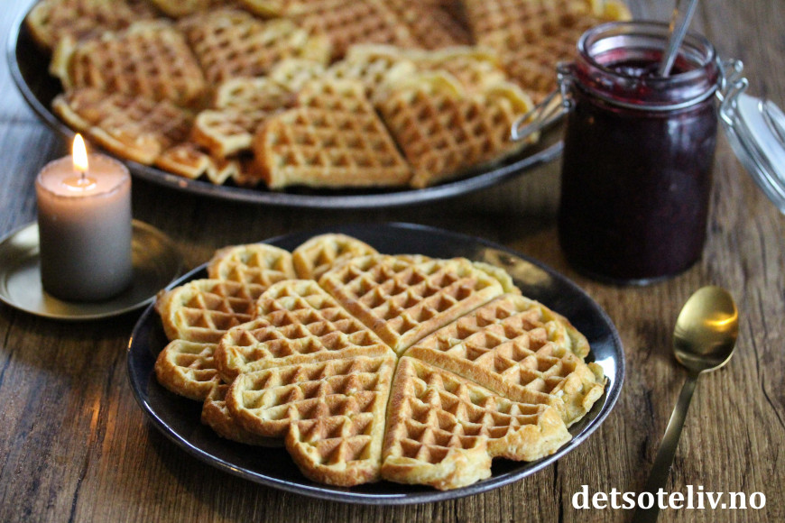 Disse vaflene lages med rømme og har ekstra god smak av kardemomme!