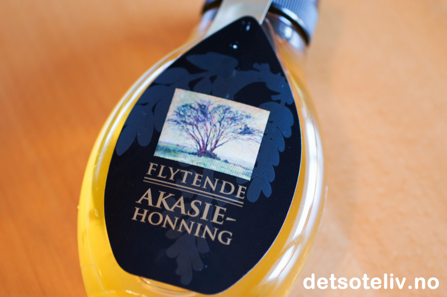 ♥ Jeg bruker flytende akasiehonning til denne oppskriften. 3 dl tilsvarer omtrent 1,5 flaske av denne typen: