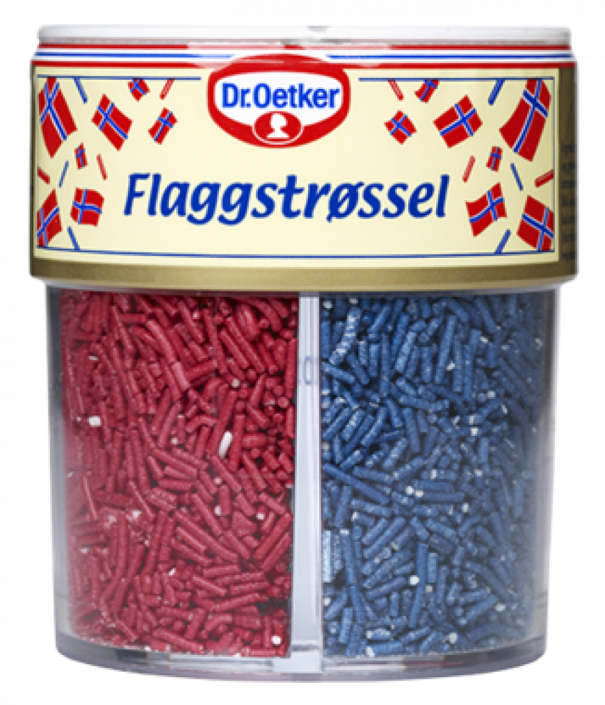 ♥ Flaggstrøssel fra Dr Oetker fås kjøpt i mange matbutikker og kjøkkenutstyrsbutikker nå før 17. mai. Jeg har kjøpt mitt strøssel hos COOP MEGA.