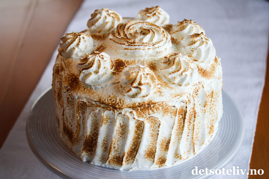 ♥ Kaken smaker aller best dag den er ferdig montert, for da har marengsen best konsistens. Rester oppbevares i kjøleskapet.