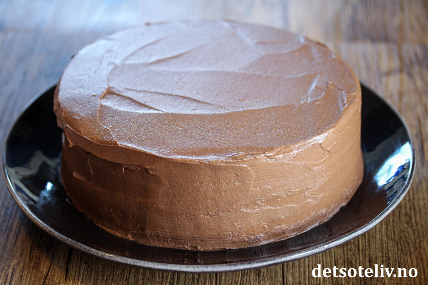 Ha så et godt lag sjokoladekrem rundt hele kaken.