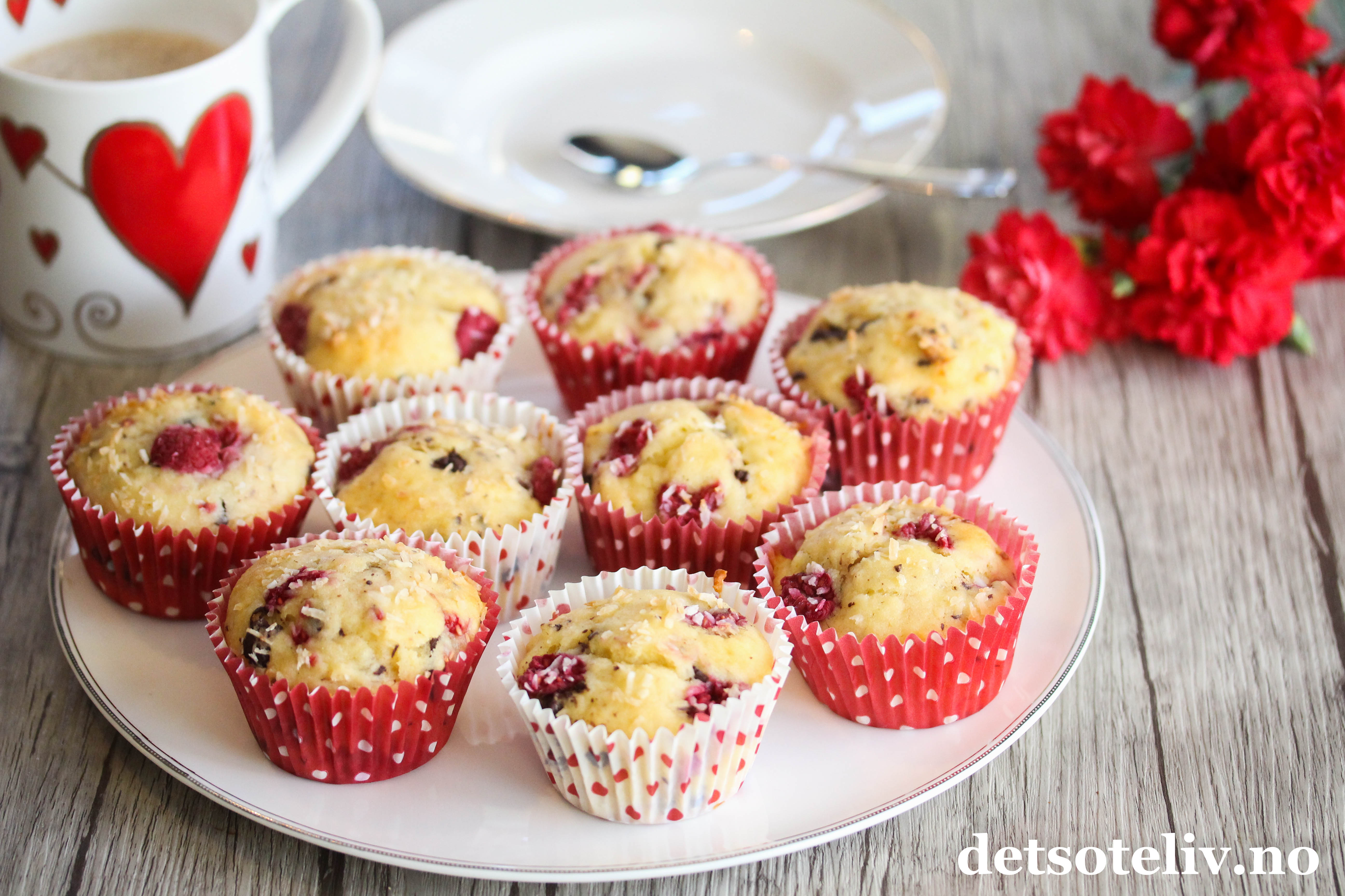 Her har du noen NYDELIGE muffins med vidunderlig god smak av vanilje, bringebær, jordbær og sjokolade!