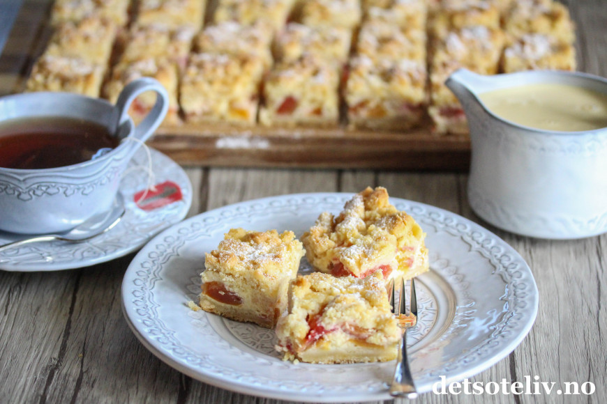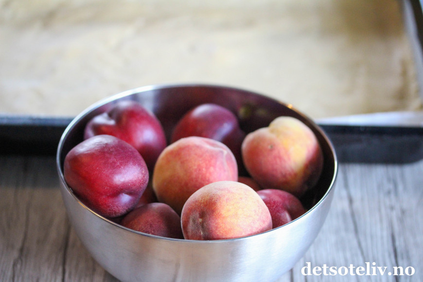 Nå ville jeg teste ut denne deilige kaken med biter av fersken og nektarin i tillegg til vaniljefyllet.