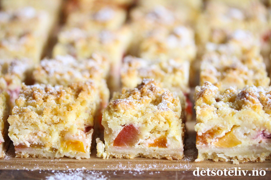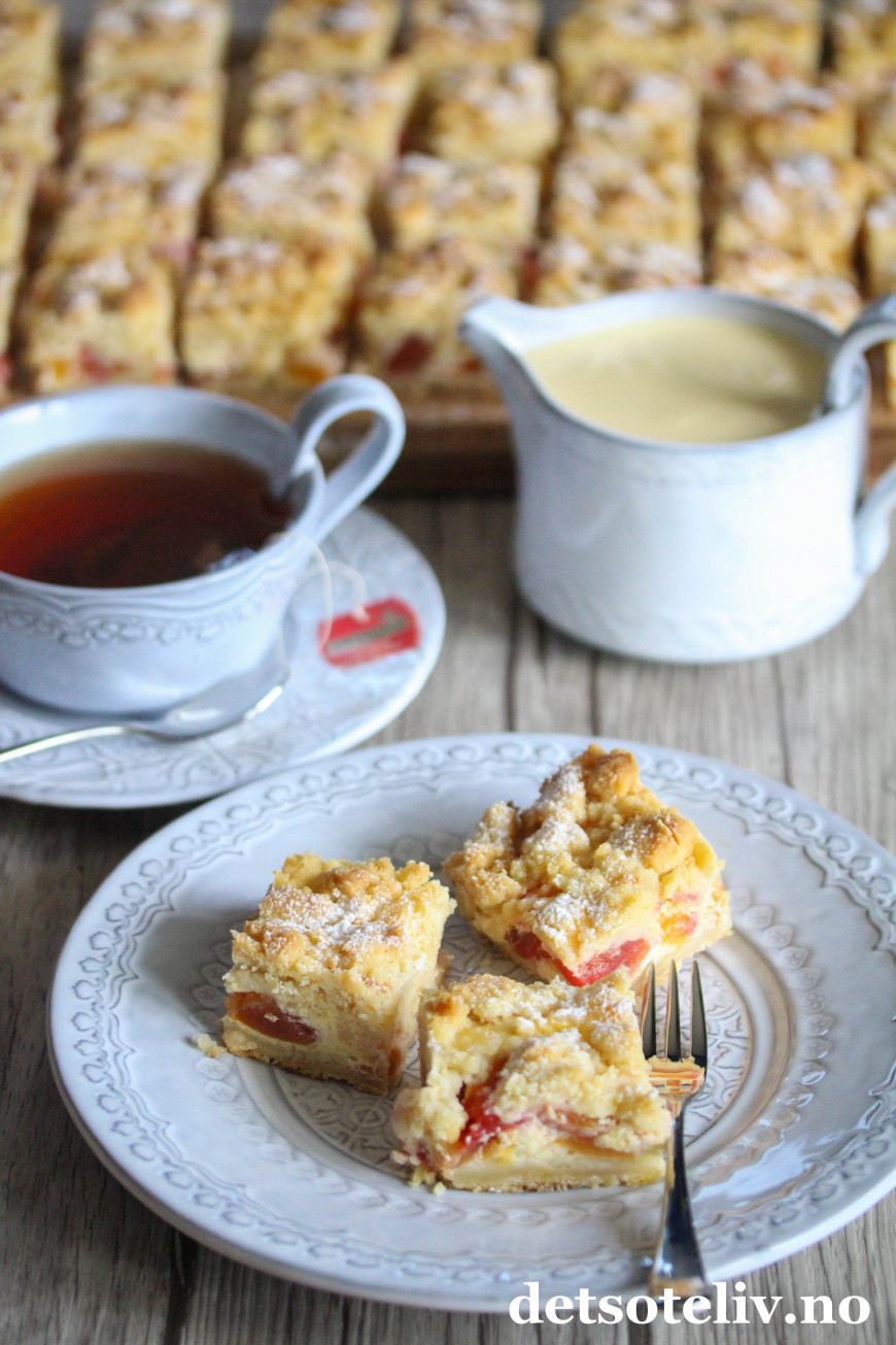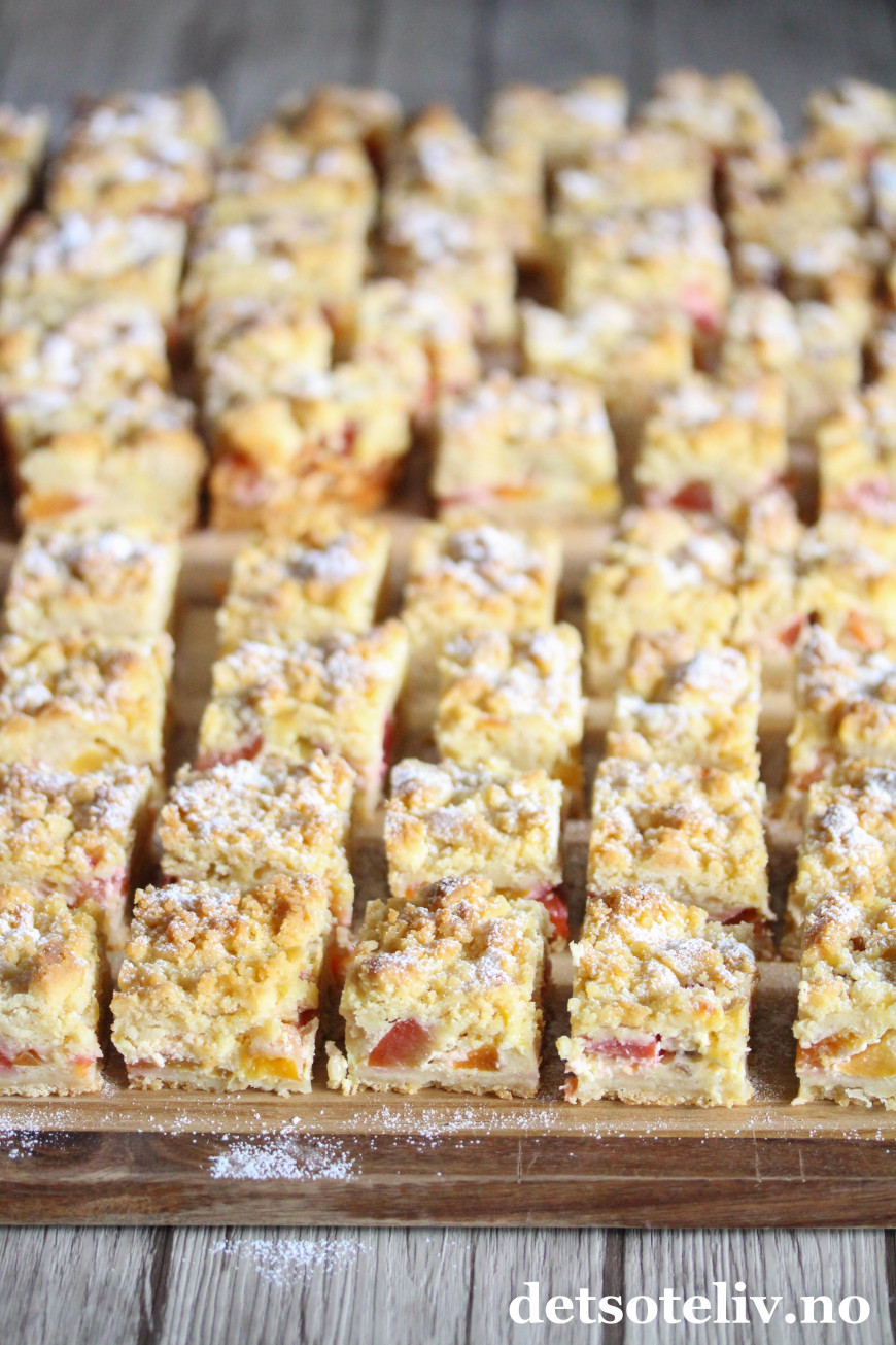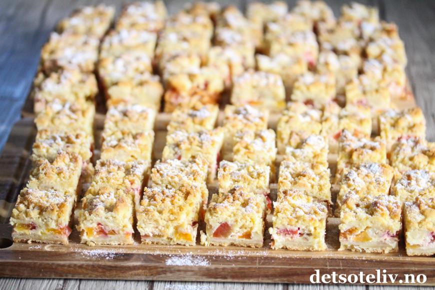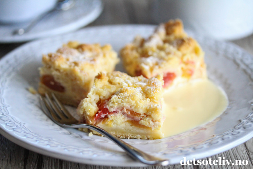 Jeg har fått mye skryt for oppskriftene på Vaniljeruter i langpanne og Vanilje- og epleruter i langpanne. Sistnevnte er samme oppskrift som førstnevnte, bare at jeg bruker et godt lag eplesyltetøy under vaniljefyllet.