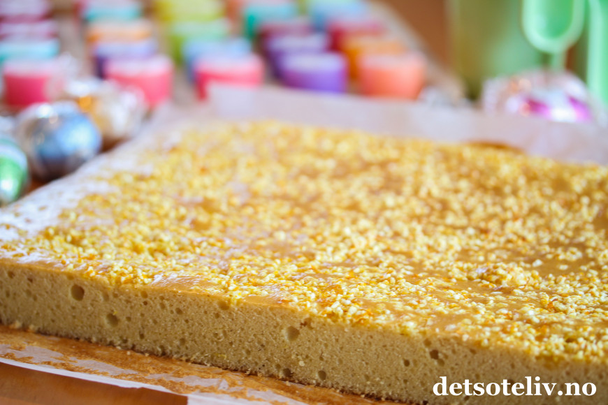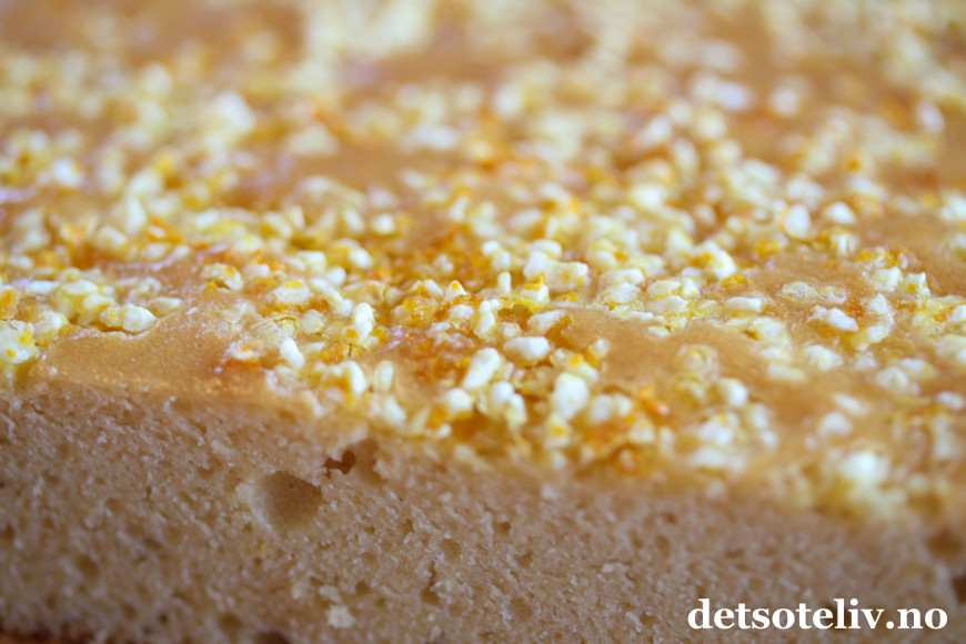 Perlesukker og revet appelsinskall på toppen av kaken gir nydelig appelsinaroma...