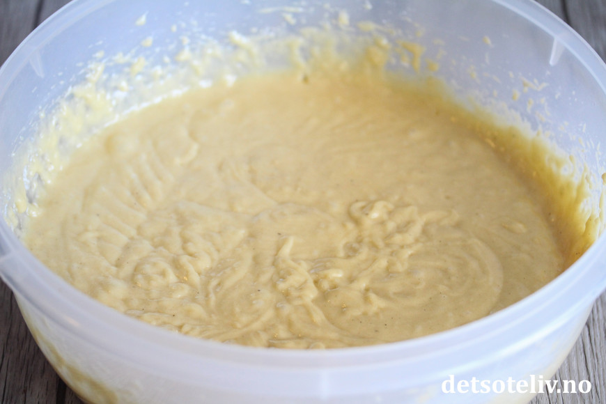 ♥ Rør minst mulig i deigen etter at du har tilsatt melet for å unngå at deigen blir seig. Jeg rører kun helt kort for hånd med en ballongvisp til deigen er blandet.