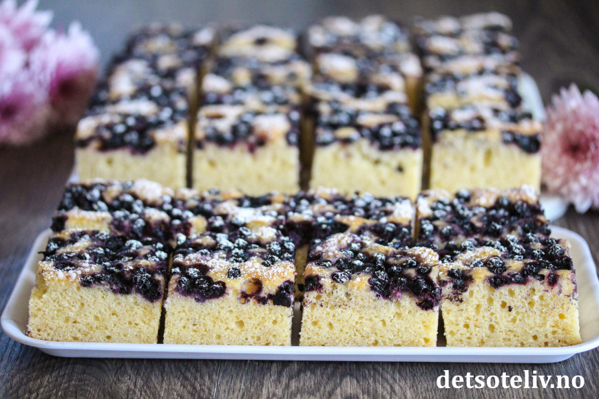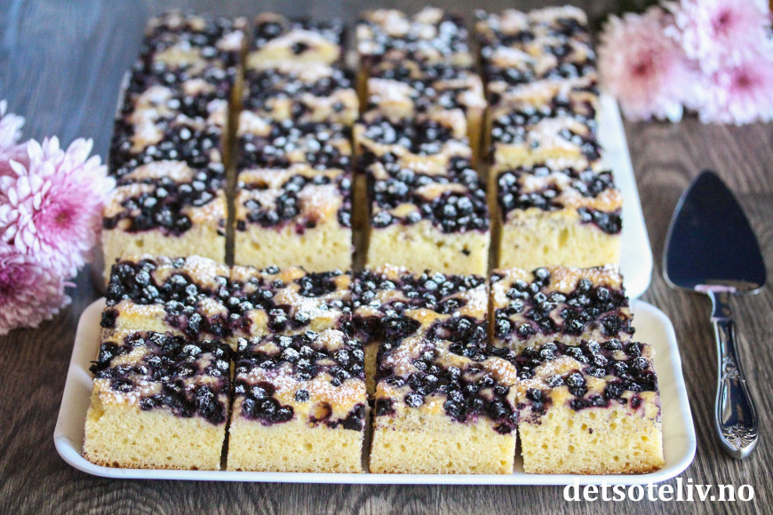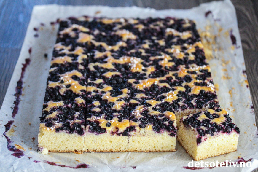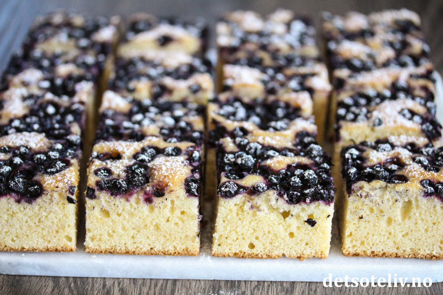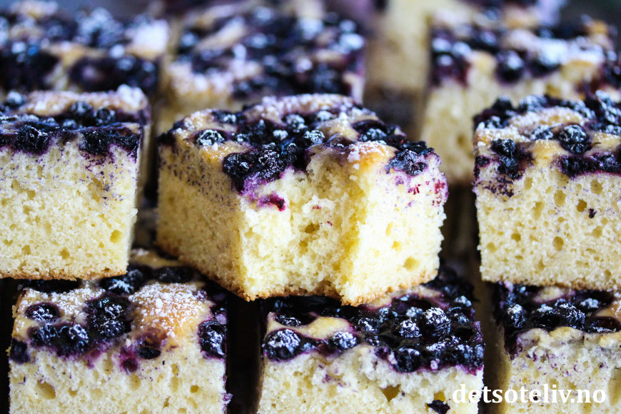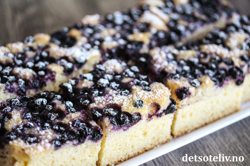 ♥ Jeg liker å bruke skogsblåbær til denne kaken. De gir best smak, og siden bærene er små, synker de ikke til bunns i kaken under stekingen.