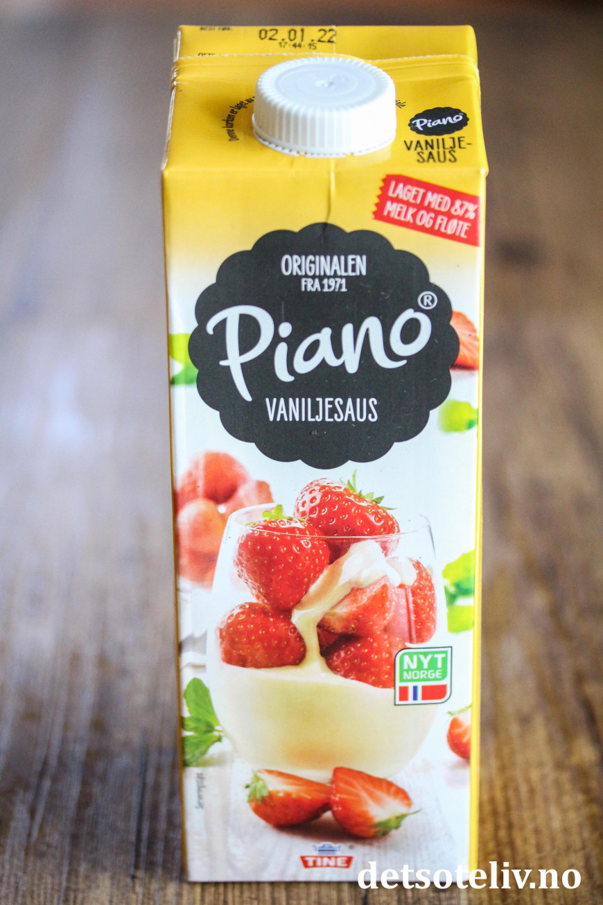♥ Jeg bruker Piano vaniljesaus (fra Tine) til denne kaken her.