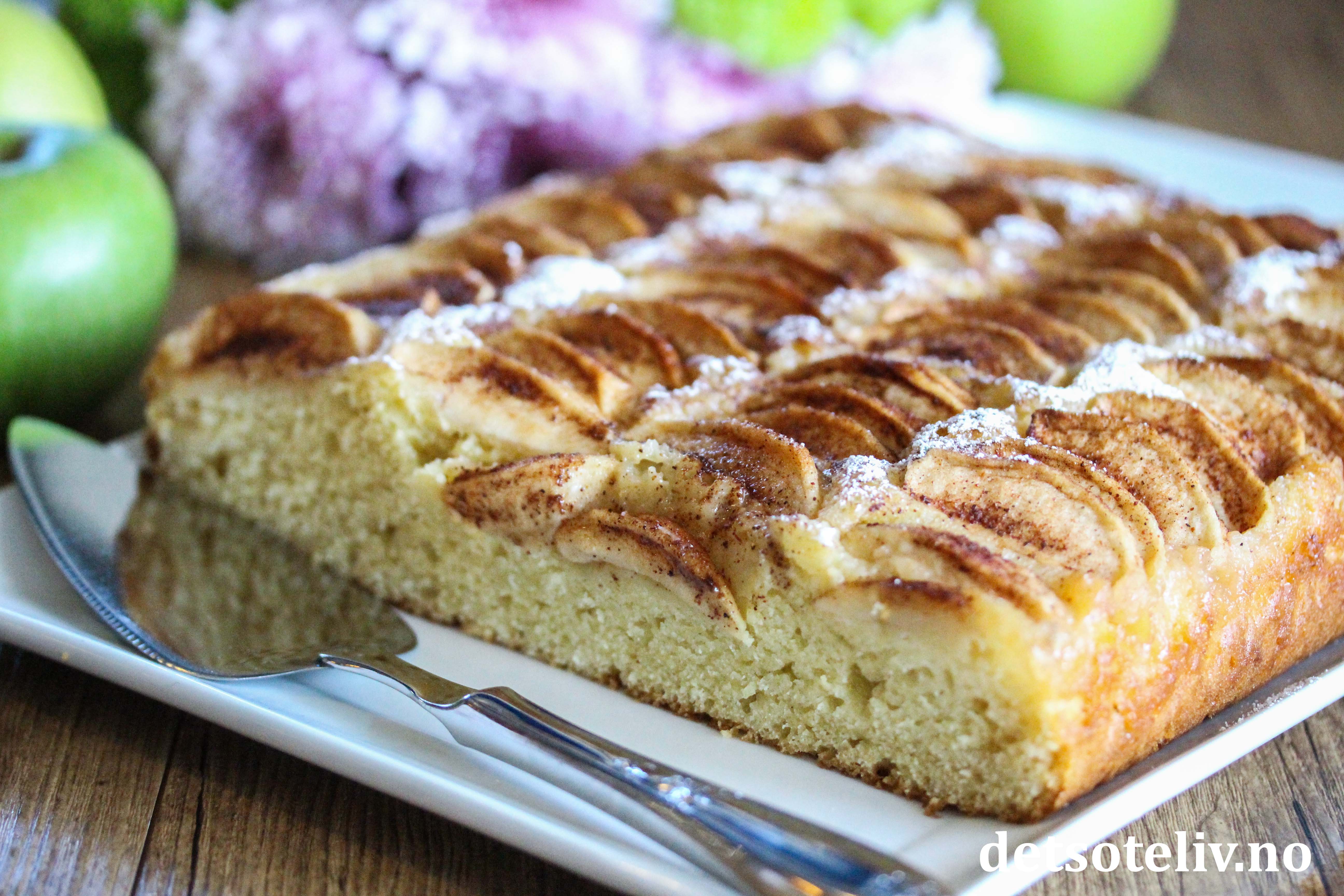 Fantastisk deilig eplekake som inneholder vaniljesaus i kakedeigen!