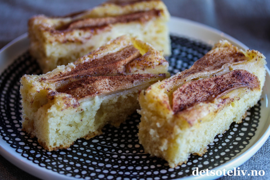 Deilig vaniljesauskake med epler!