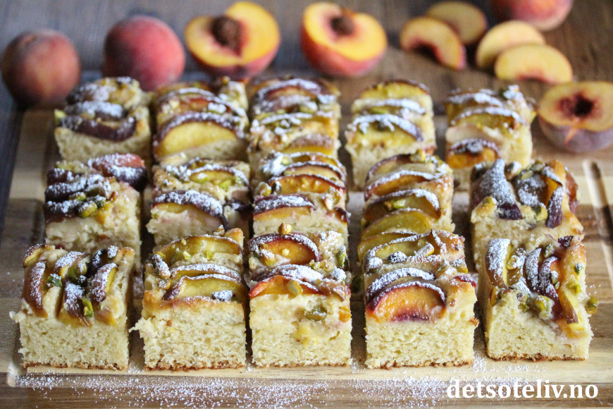 Ja, da har jeg testet ut å lage en av mine yndlingskaker med fersken også!