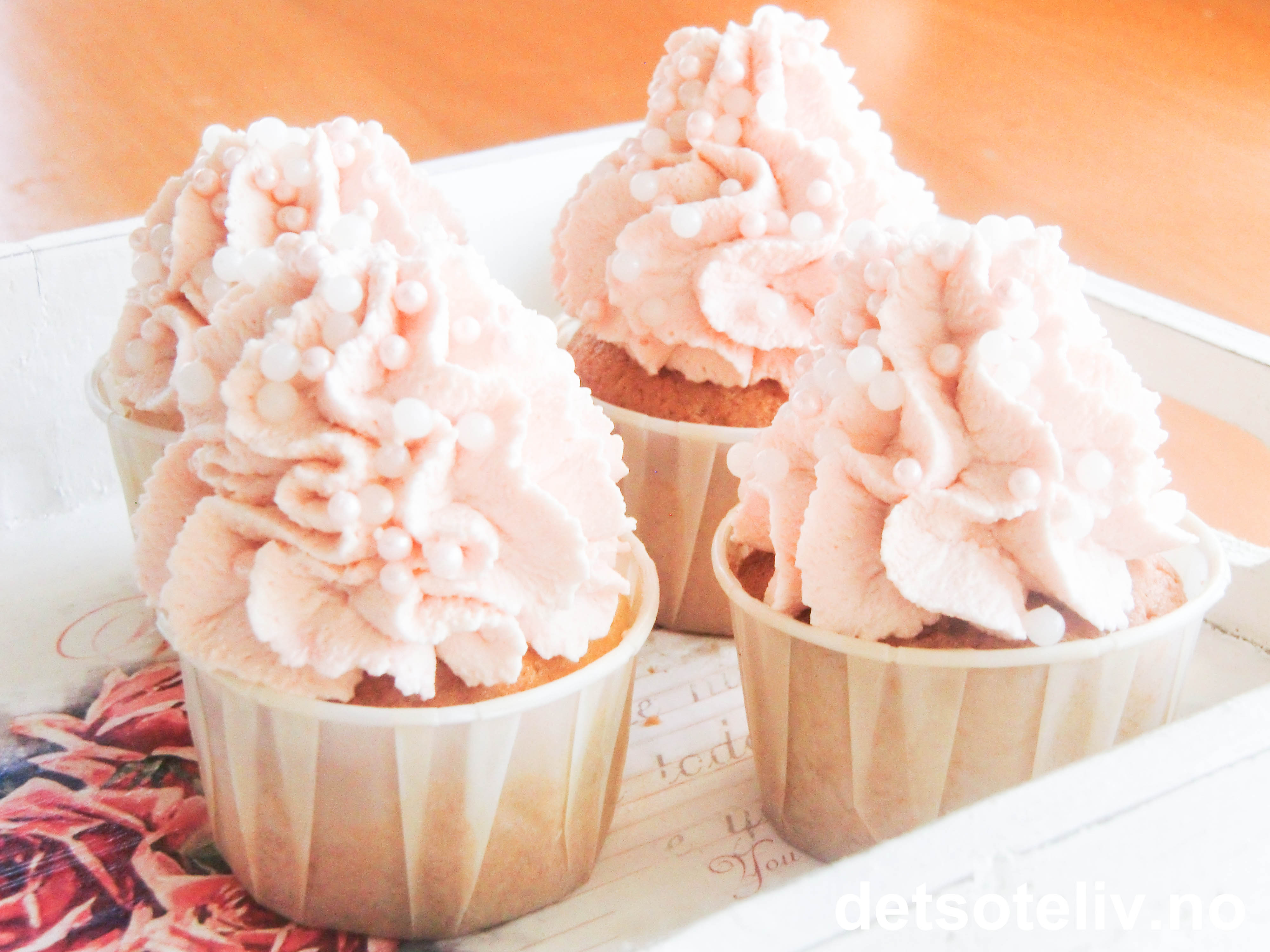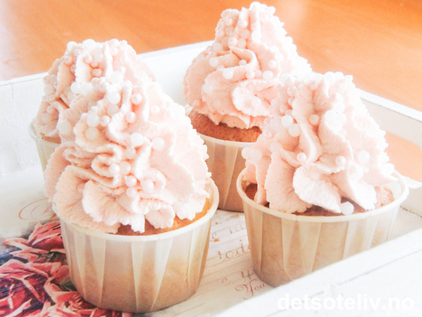 Disse cupcakesene smaker aller best samme dag, når kremen er helt fersk. Server gjerne friske bær eller bærkompott ved siden av.
