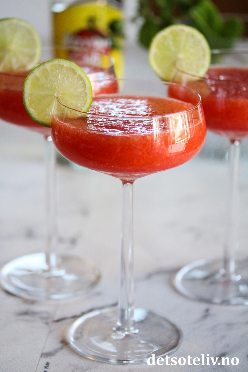 Dette er en nydelig variant med vannmelon og lime. Herlig sommerdrink!