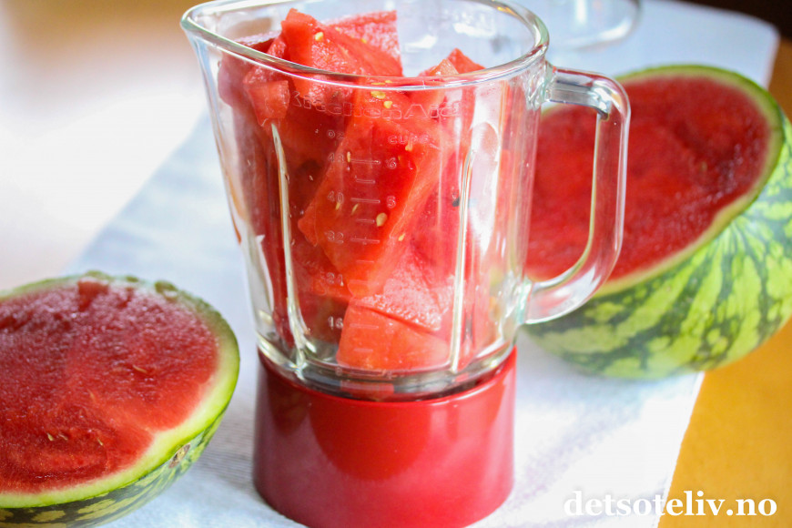 Mos vannmelonen i en food processor, blender eller lignende. Det går kjemperaskt!