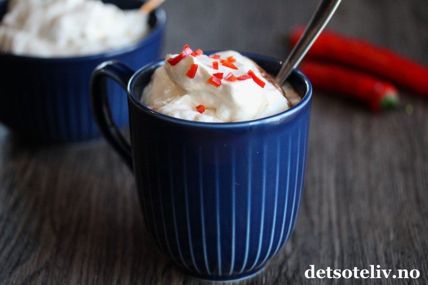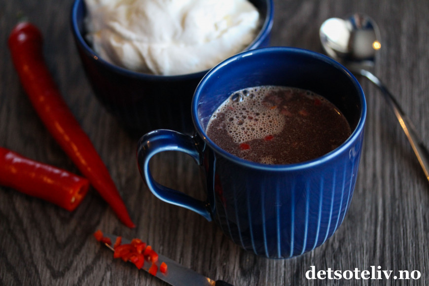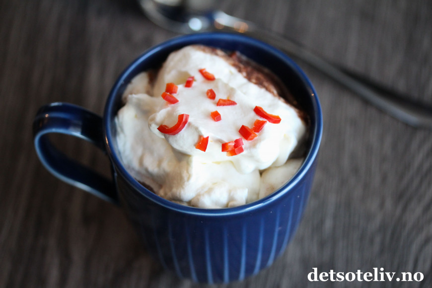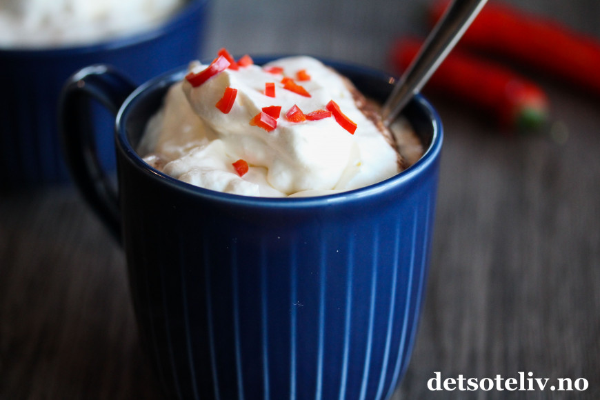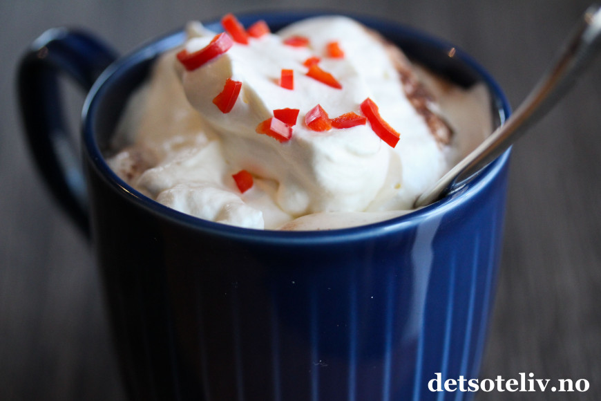♥ Som sagt er det bare å droppe chili og kakao hvis du ønsker vanlig varm sjokolade som også kan serveres til barn og ungdom.