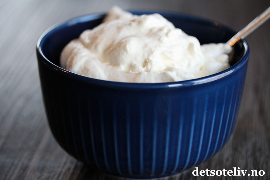 Pisk kremfløten til myk krem. Oppbevar den i kjøleskapet frem til servering.