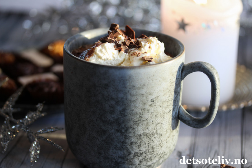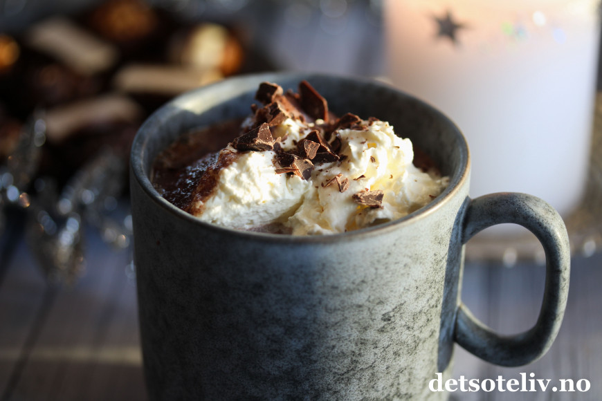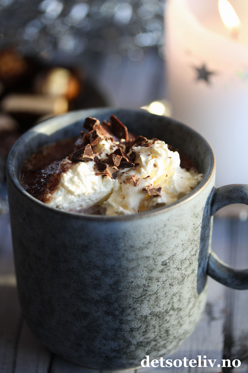 Topp gjerne koppen med en klatt pisket krem og hakket sjokolade - det er sååå godt!