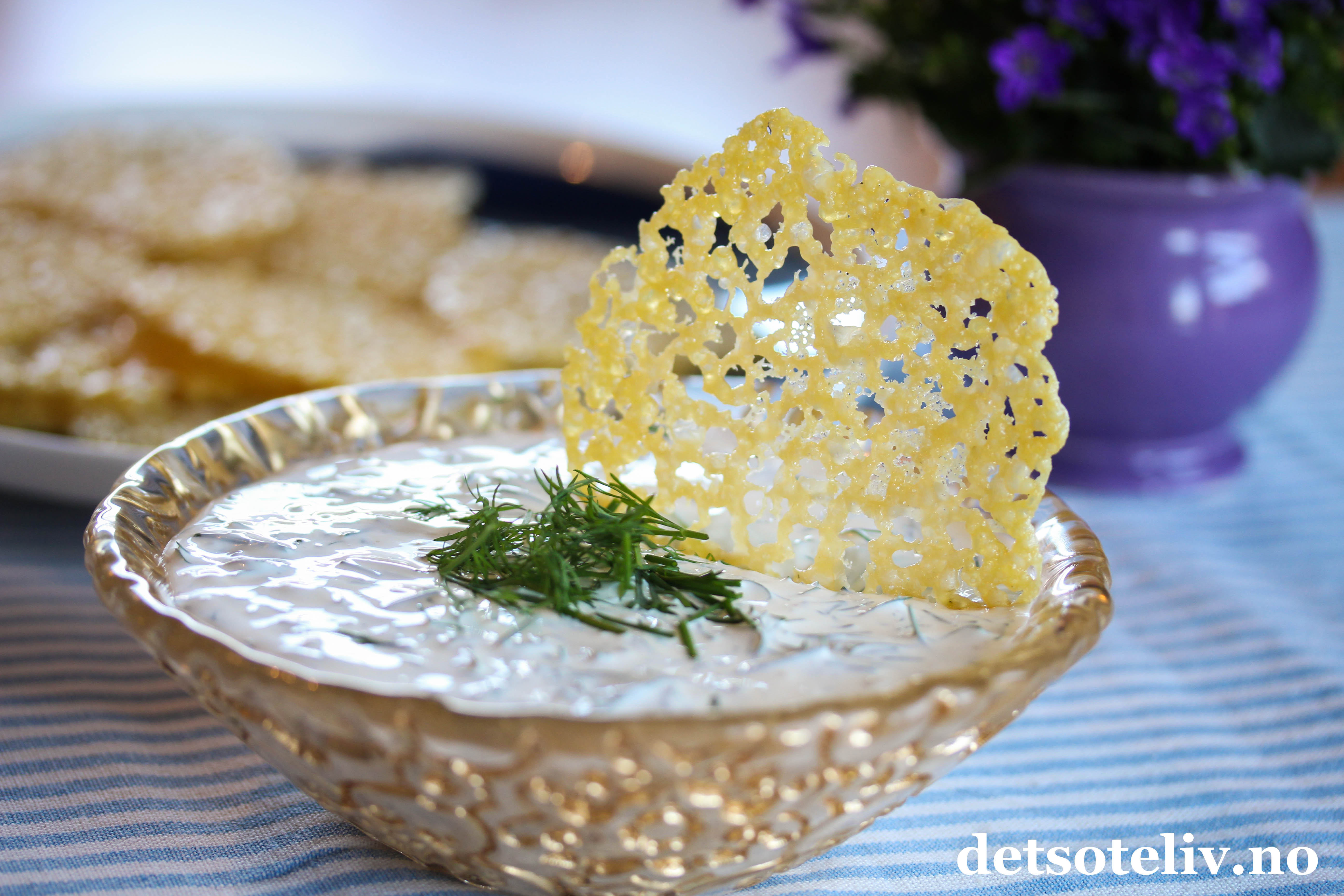 Til ca. 14 ostechips med tilhørende dipp trenger du: