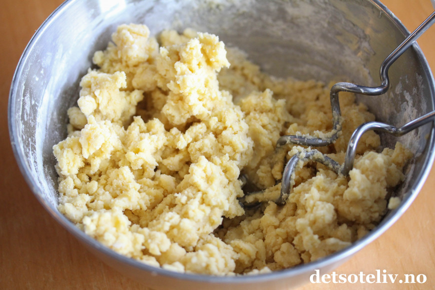 Elt dette raskt sammen (jeg brukte en håndmikser med eltekroker til dette).