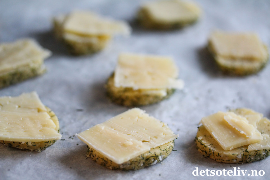 Legg gjerne litt ost på hver kjeks før steking for ekstra god ostesmak.