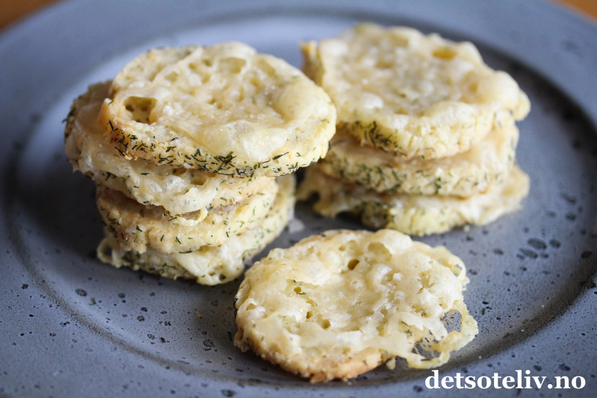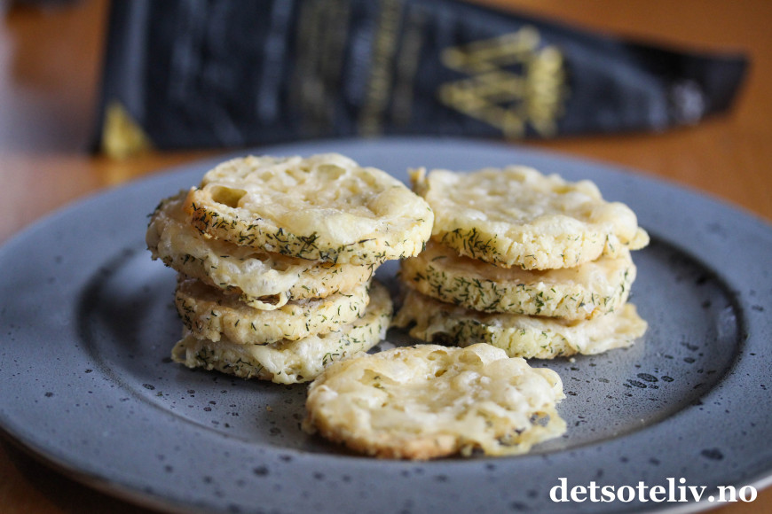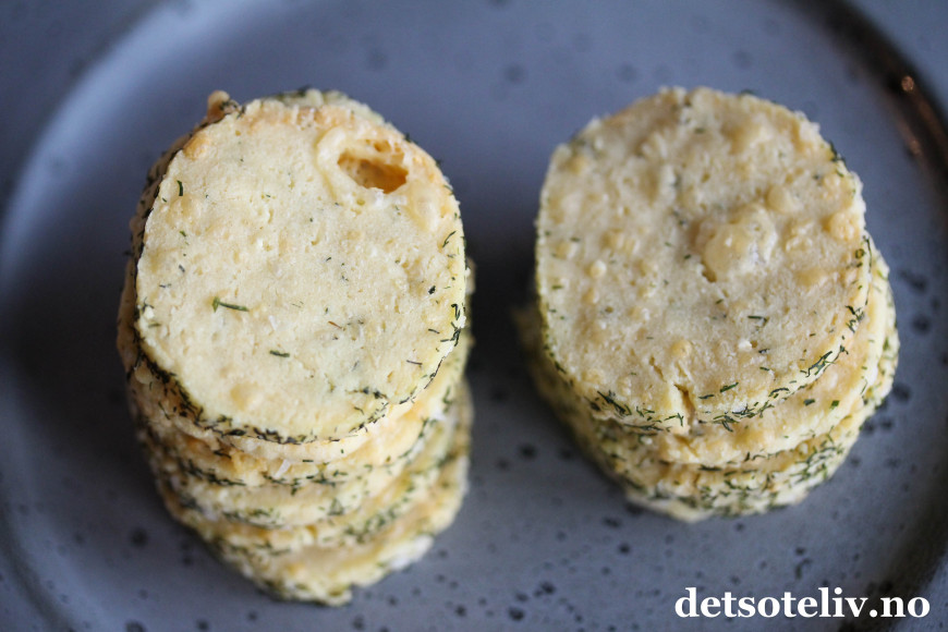 PS: Legg gjerne litt ost på hver kjeks før steking for ekstra god ostesmak.