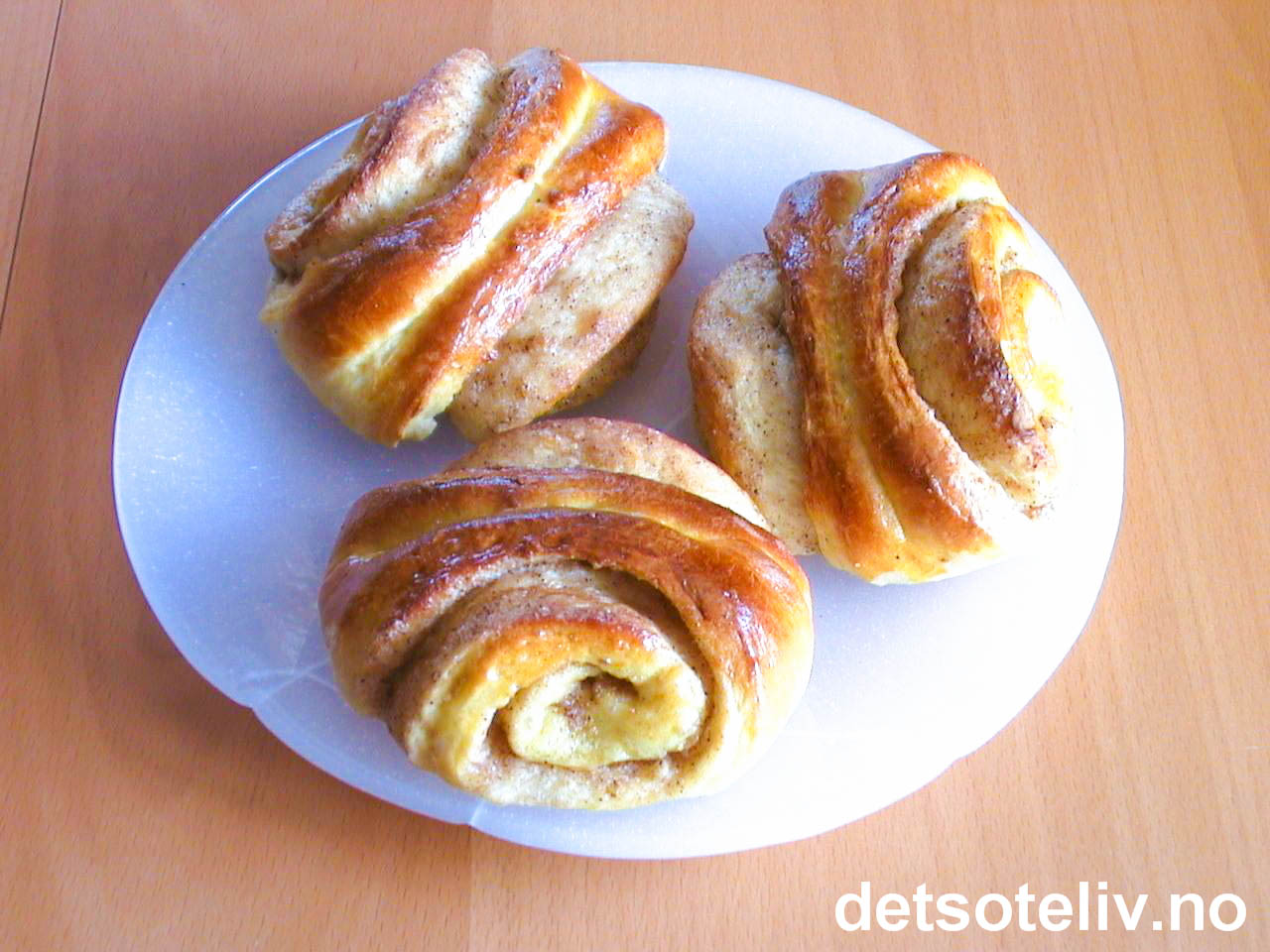 Smuldre opp gjæren i en bakebolle. Smelt smøret. Bland melken i smøret og varm opp blandingen til den er lunken (37°C). Ha litt av smørmelken i bakebollen og løs opp gjæren i dette. Tilsett resten av smørmelken, sukker, kardemomme og sammenpisket egg. Begynn så å blande i det meste av melet til en jevn deig. La deigen heve tildekket i ca 1 time.