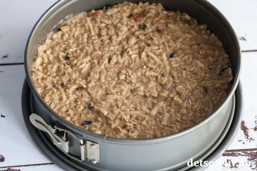 Ha deigen i en rund form (24 cm i diameter) med bakepapir i bunnen.