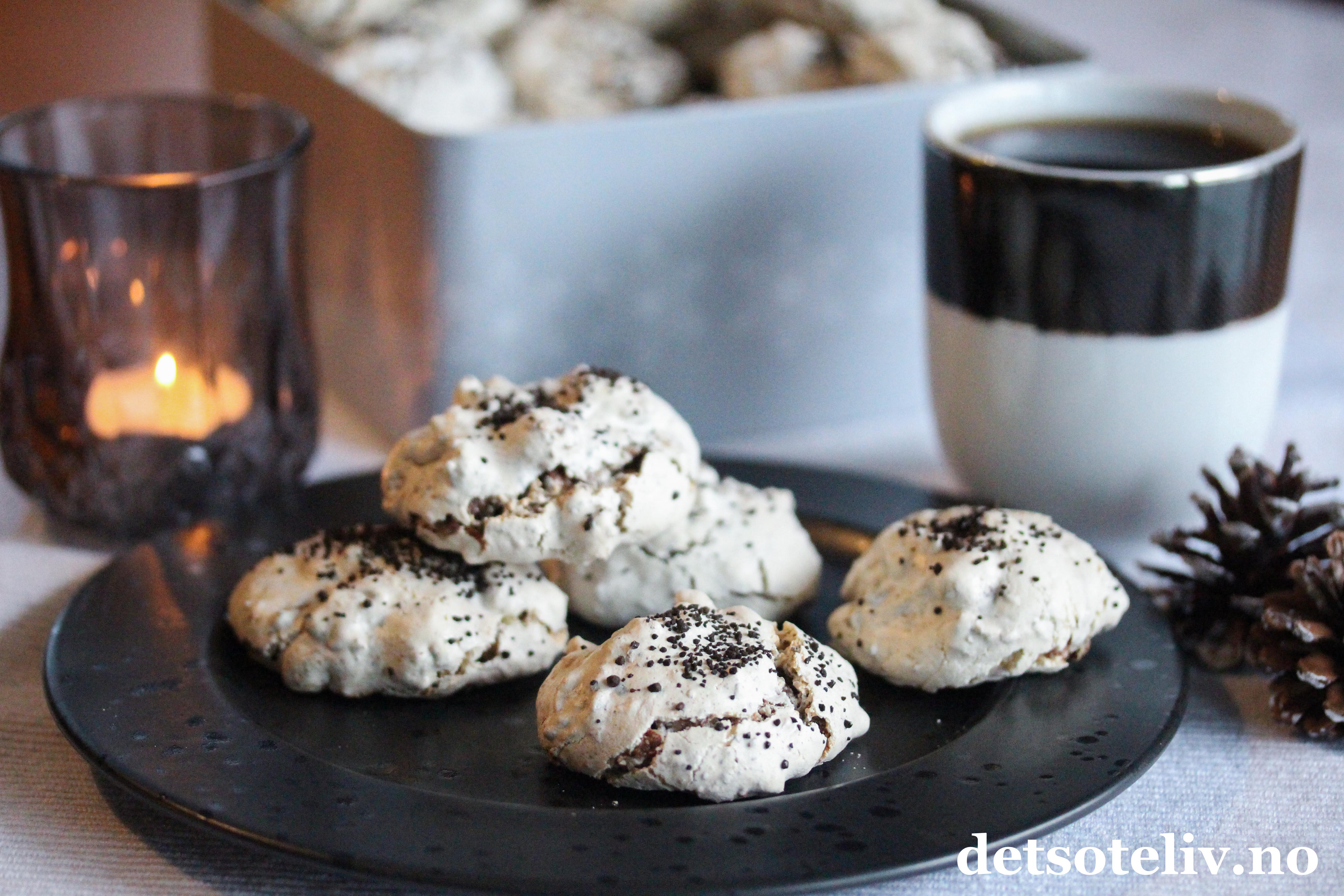 Stek kakene midt i ovnen ved 180°C i ca 10 min. La kakene avkjøles helt på platen før de forsiktig flyttes over på rist med en stekespade.
