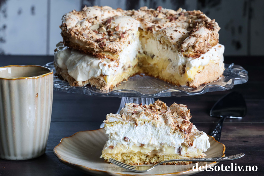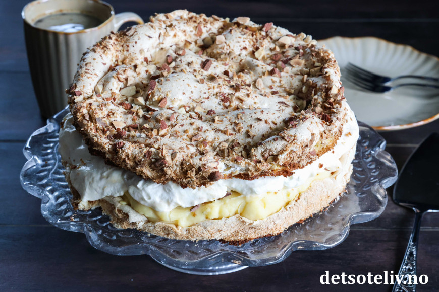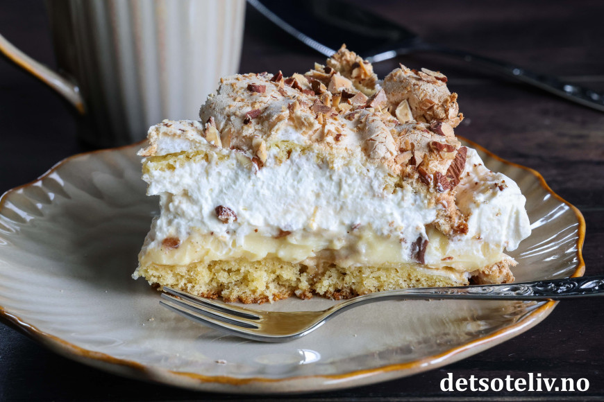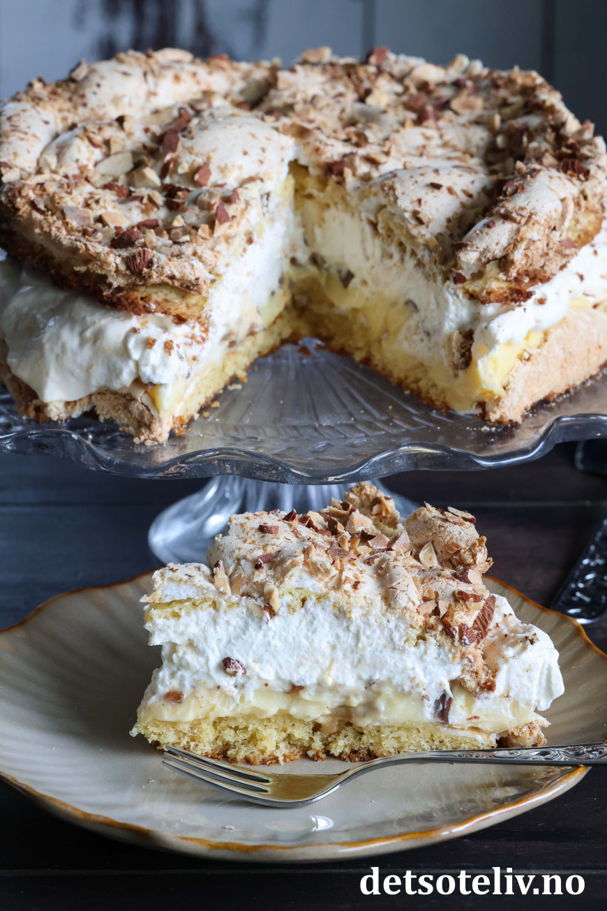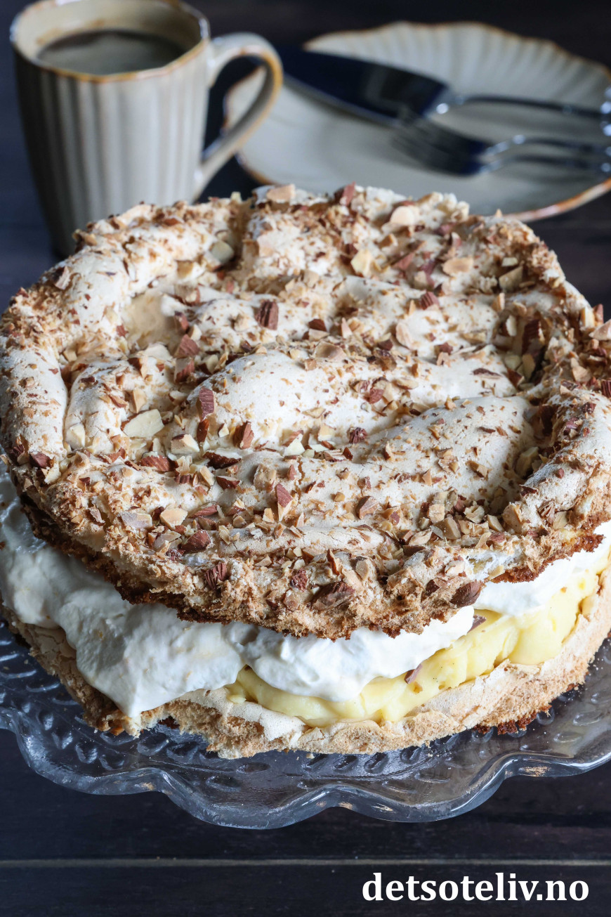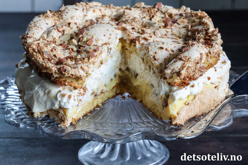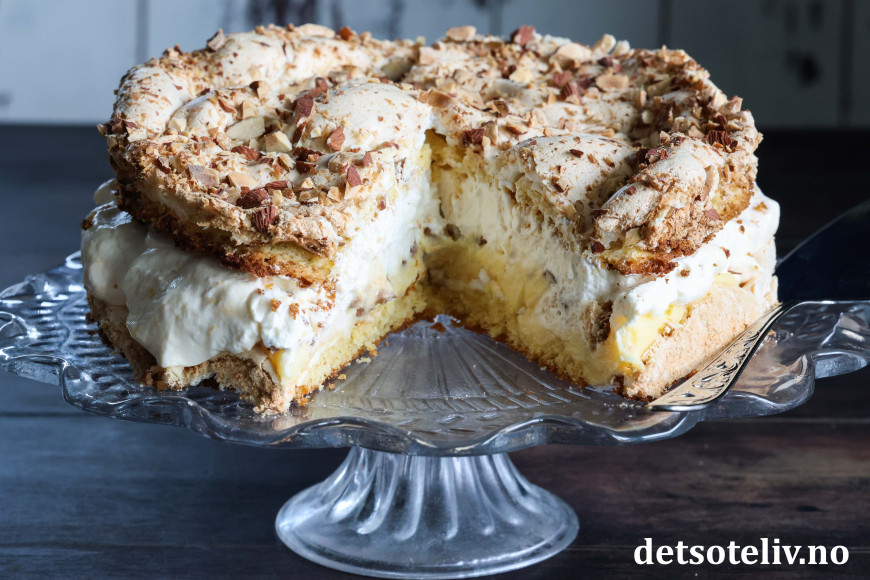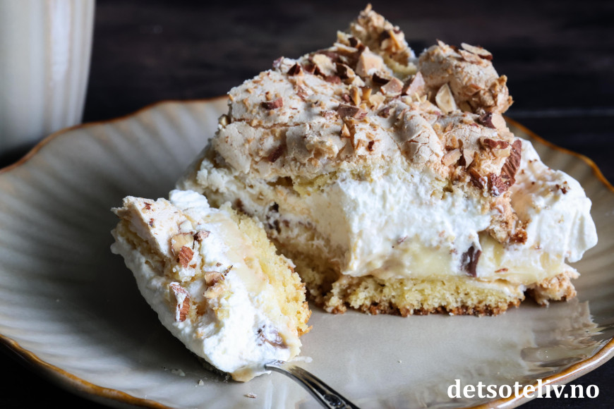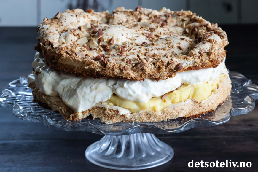 Denne varianten med vaniljekrem, aprikoskrem og hakket Daim fikk jeg tips om av en av dere. Jeg er veldig glad jeg testet det ut, for denne kaken ble fantastisk god! Glad for å kunne dele dette tipset videre. 😊