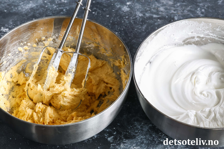 I en annen bolle piskes eggeplommer, maisenna og sukker lett sammen.