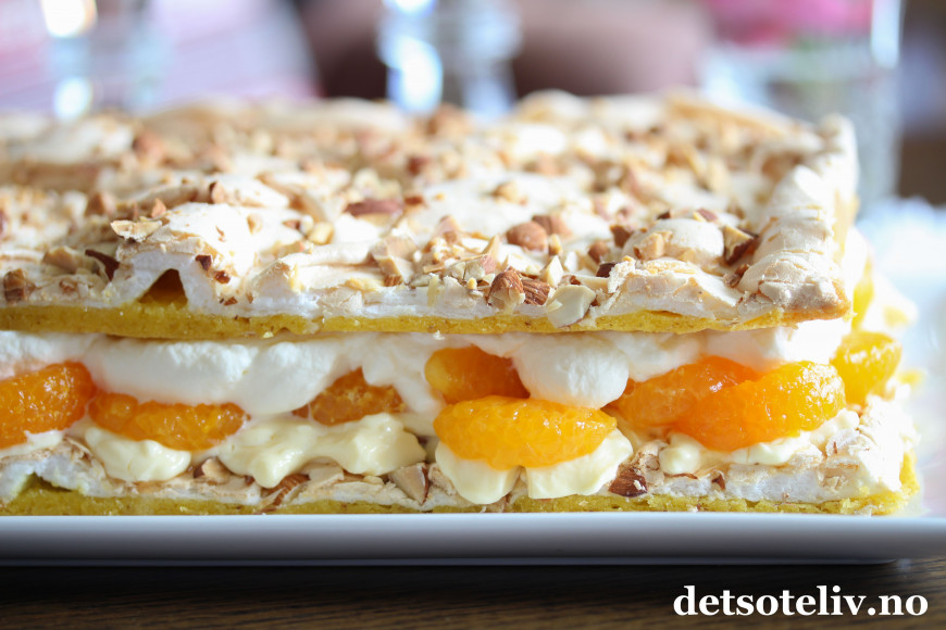 ♥ Jeg bruker 2 små bokser hermetiske mandariner til denne kaken. Husk å la dem renne godt av seg før du legger dem på vaniljekremen ellers vil fyllet blir for rennende.