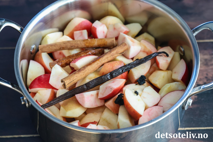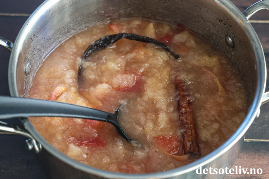 Kok hjemmelaget Eplekompott med vanilje og kanel etter denne oppskriften.