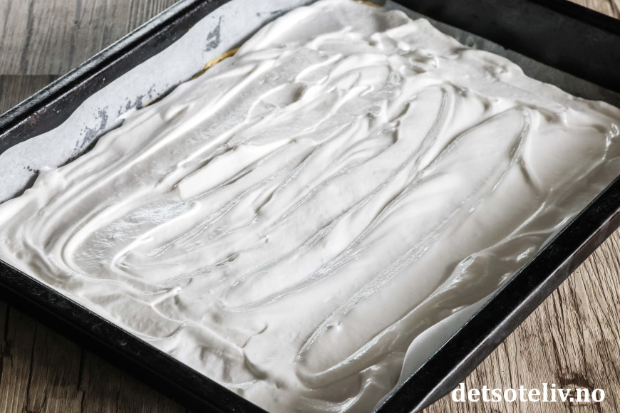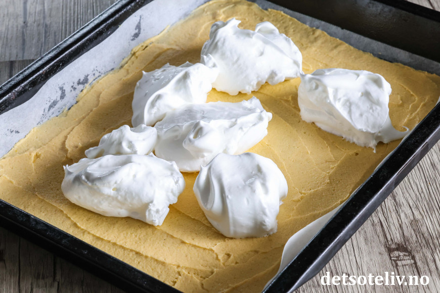 Fordel marengsen jevnt over deigen i langpannen.