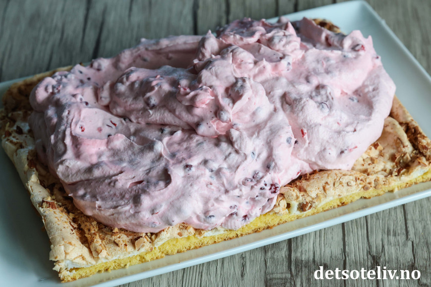 Ved å fylle Verdens Beste med søt, fluffy tyttebærkrem får du både tilfredsstilt behovet for variasjon, en flott, kunstnerisk kake og "intense pleasure"! 😍