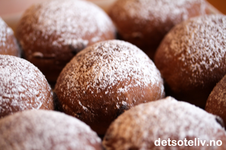 Superlekkert med hvitt melisdryss på de brune sjokoladebollene!