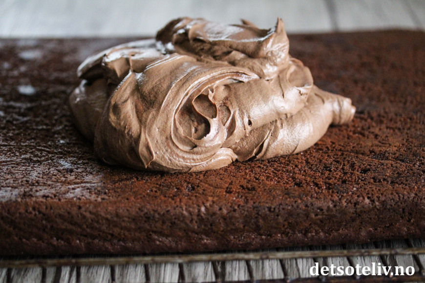 Til glasuren piskes mykt smør sammen med kakapulver, melis og melk. Tilpass konsistensen på kremen med varm kaffe.